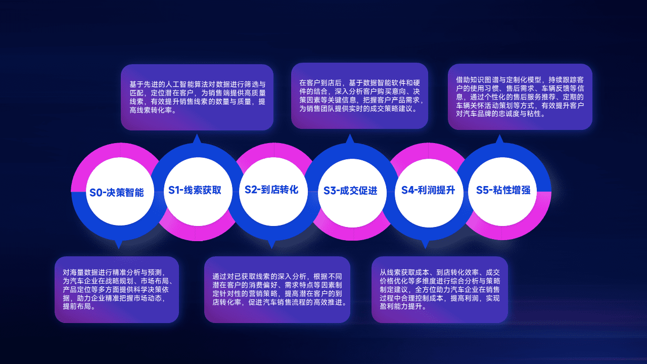 通过拓宽潜在客户来源、、、优化线索分配并提高到店转化率,,,以增强销售效率。。。。同时,,,,利用线索数据不断优化分析模型,,,有效提升转化率,,扩大营销影响力。。